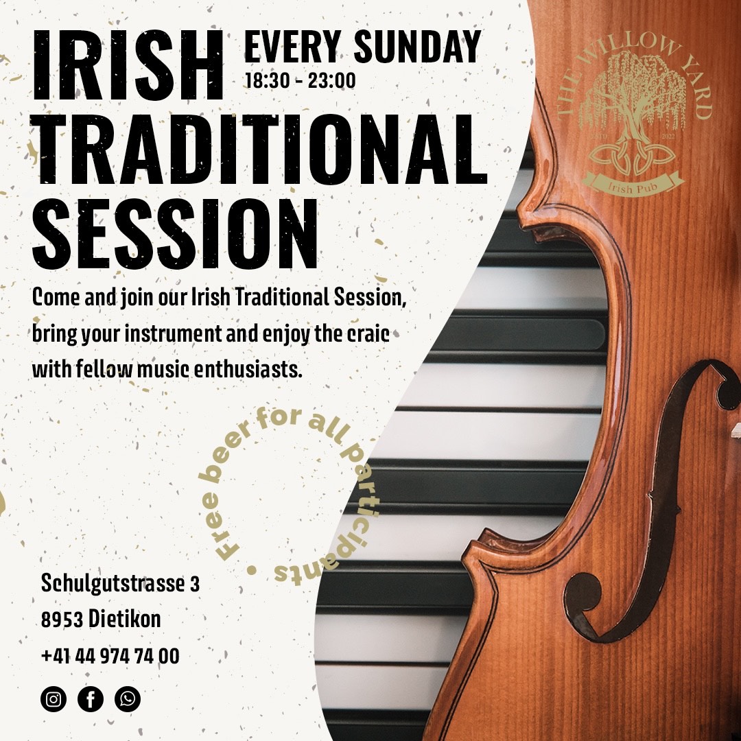 Come and join our Irish Traditional Session at The Willow Yard. Bring along your chosen instrument and enjoy the craic with fellow music enthusiasts in an authentic Irish atmosphere. All are more than welcome.
